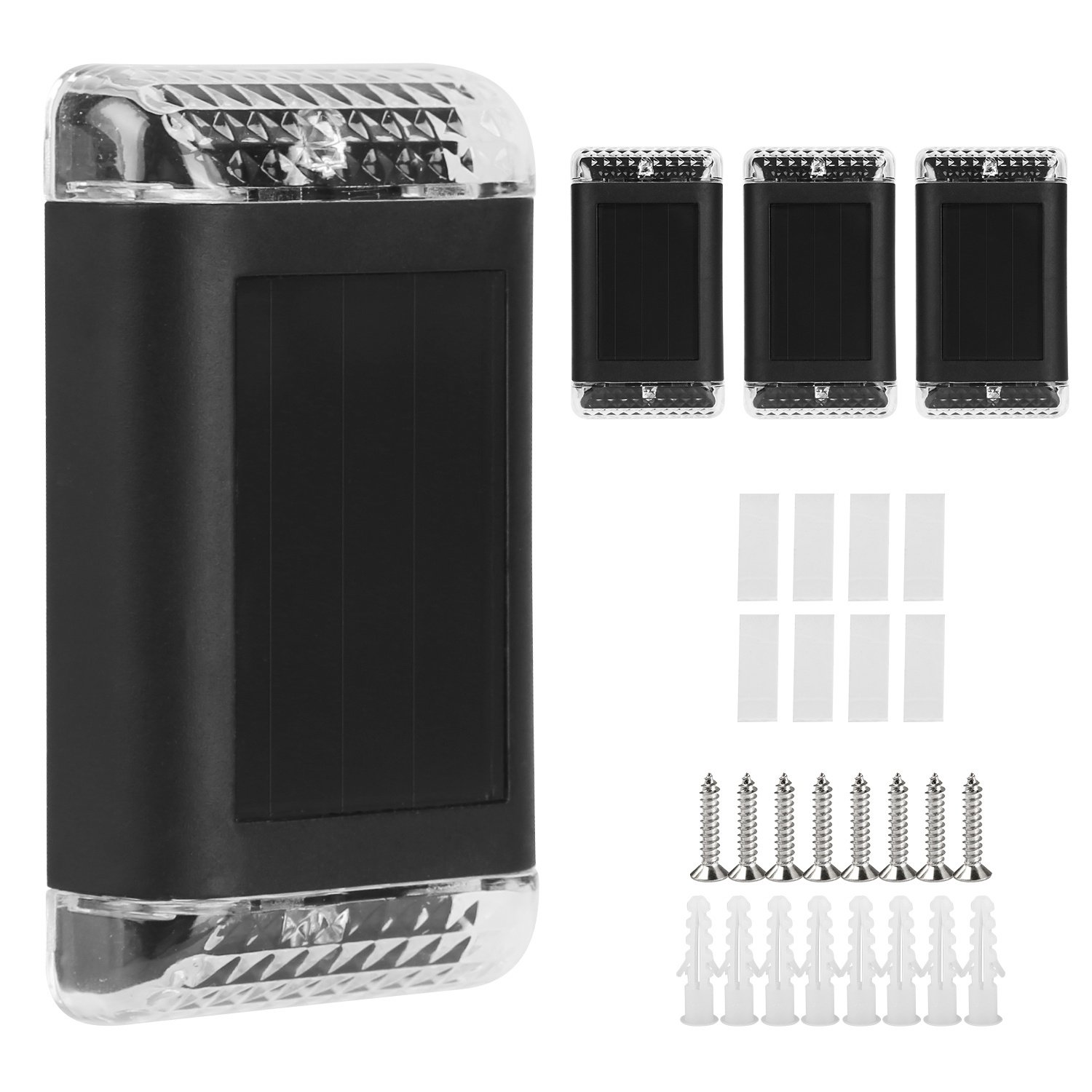 *Wide Applications*:This wall mounted solar powered light is easy to install and can be placed on flat surfaces, such as stairs,decks,pathways,driveways,or on fences, like railings, outside wall etc.