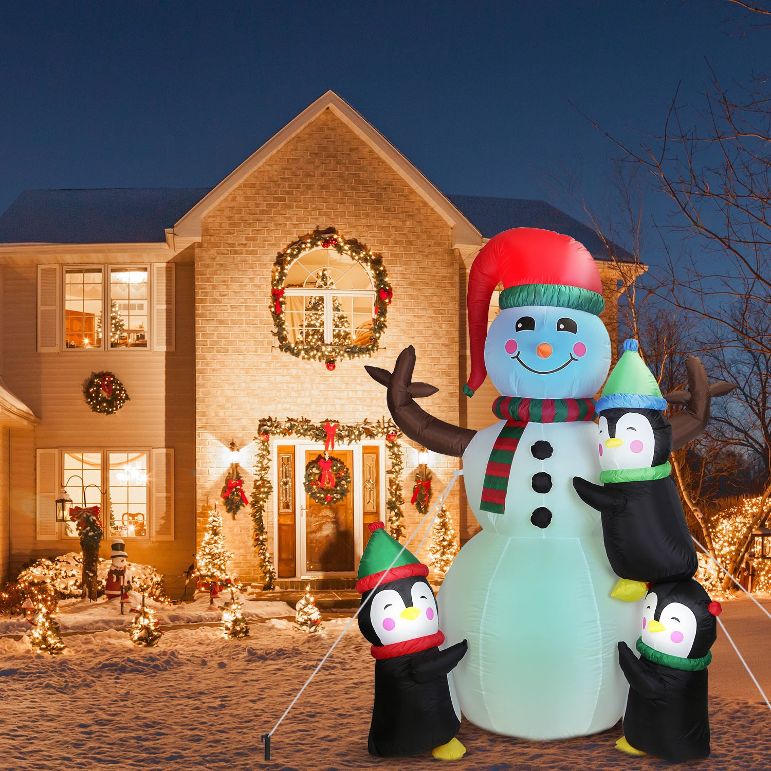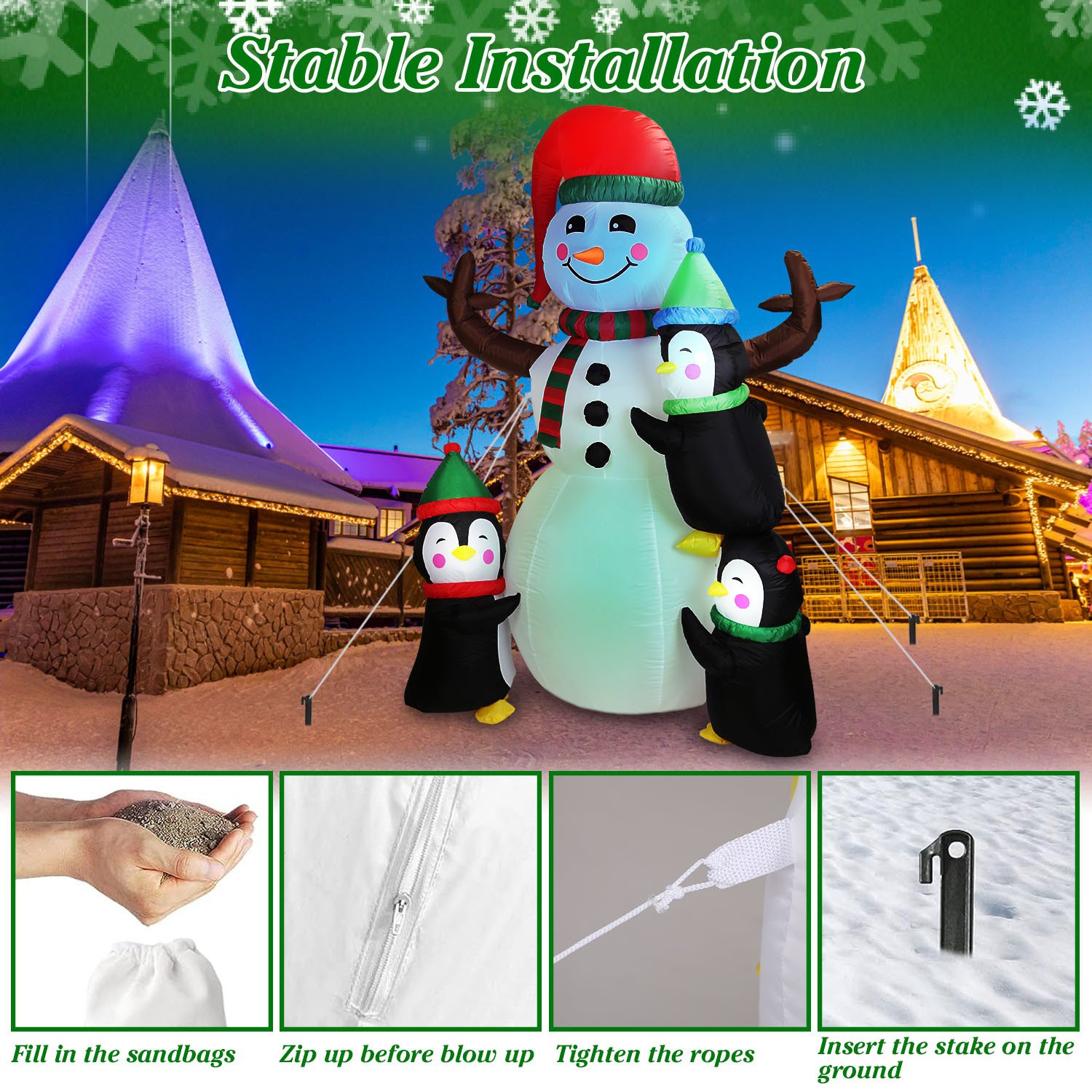 *Cute Christmas Decoration*:A perfect outdoor decoration in this Christmas! Compose of one large snowman and 3 cute penguins, this 5.9FT height inflatable decoration will definitely attract your friends and neighbors’ attention, add joyful festival atmosphere and create unforgotten memory.
