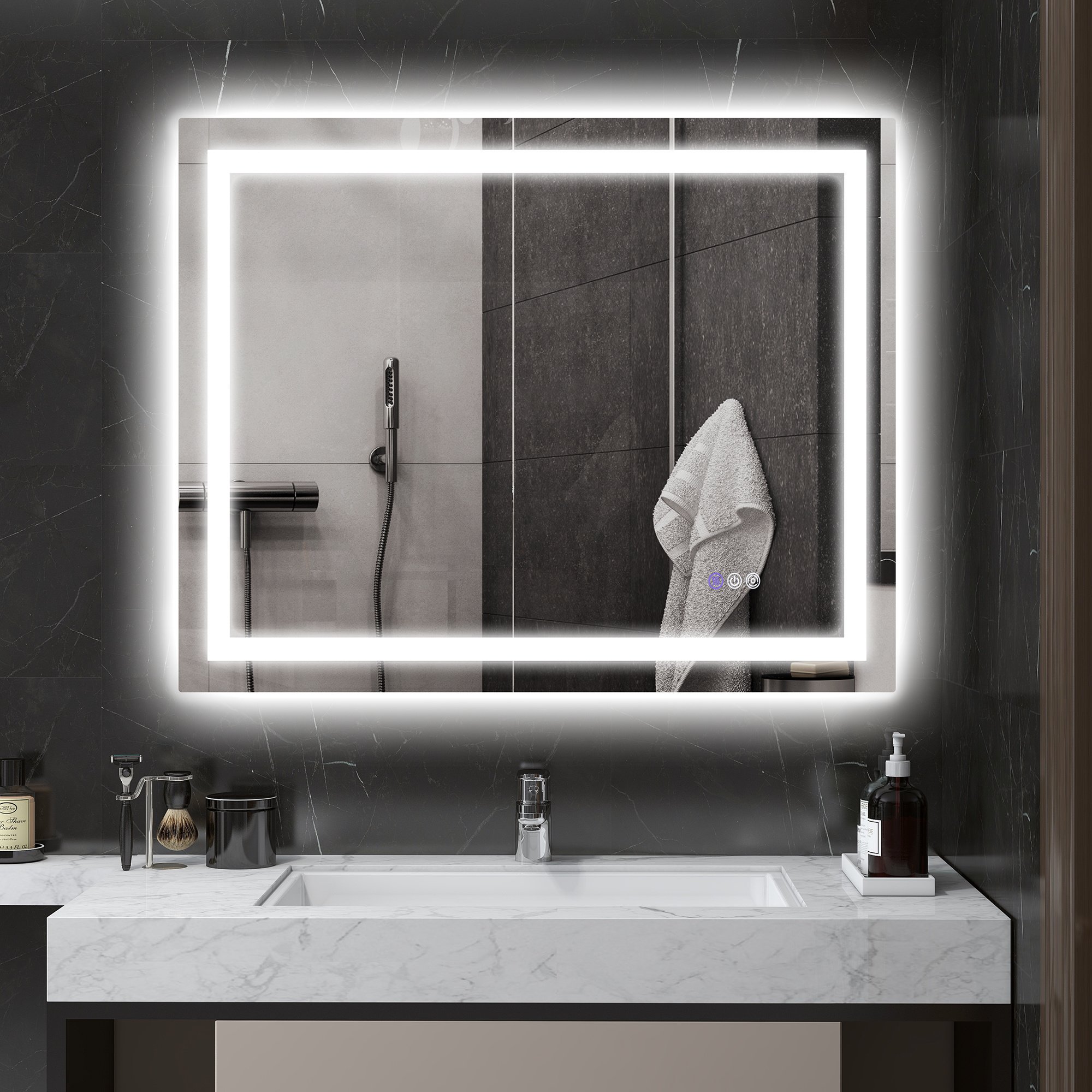 Anti-Fog & Memory Function: Effortlessly maintain a clear mirror with the built-in anti-fog function. At the press of a button, you can defog our LED mirror, ensuring constant clarity. The defogger will automatically turn off after 1 hour for convenience, and its memory function retains your settings.
