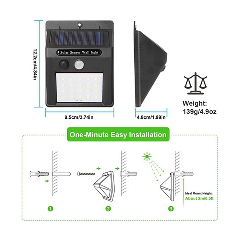 Wall mounted solar powered light can produce bright light to illuminate patio, yard, pathway, garden, fence and more without electricity cost.