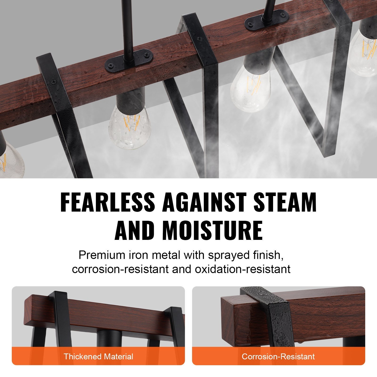 3.Exceptional Durability, Built to Last: Crafted from durable metal, our chandeliers for dining room features a stable structure that ensures long-lasting performance. The walnut wood grain seamlessly blends with the black iron frame, offering a rustic yet elegant touch to your interior decor. Resist fading and corrosion, it adds enduring charm and sophistication to any space.